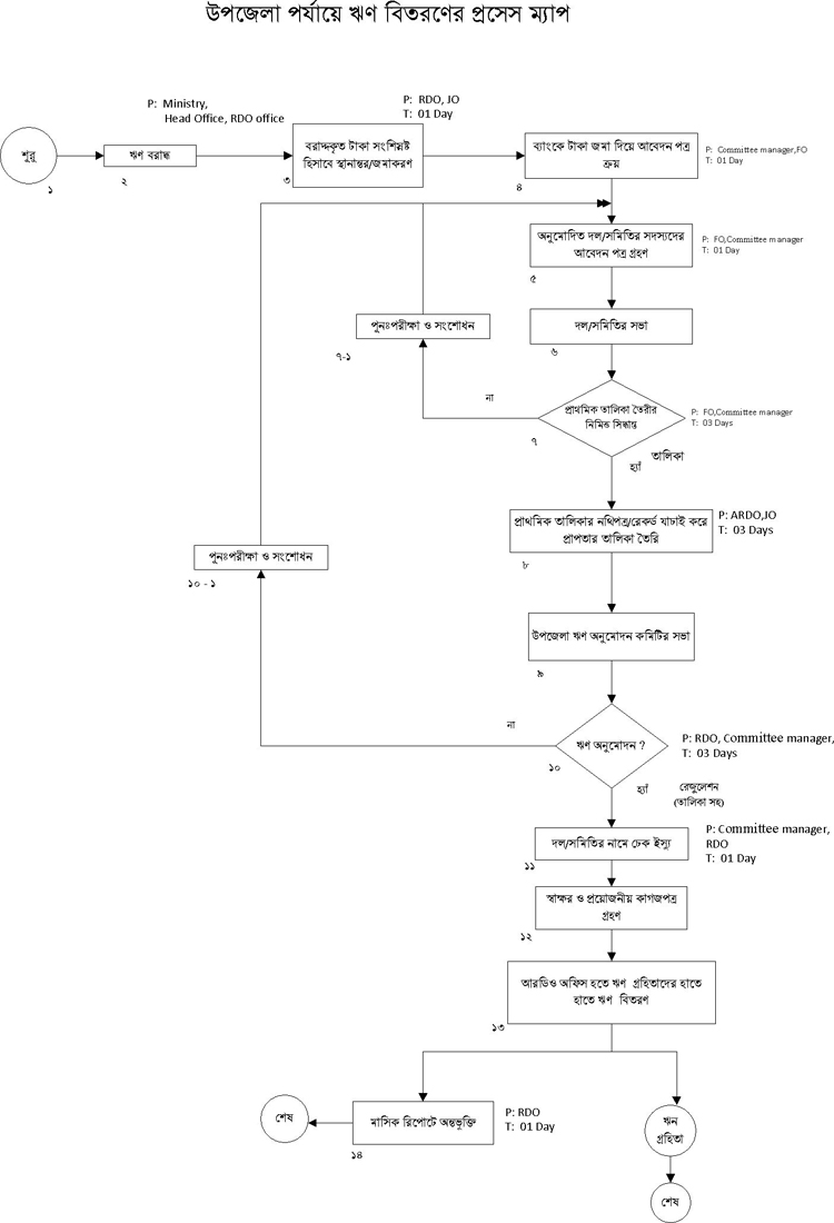 উপজেলা পর্যায়ে ঋন প্রদানের প্রসেস ম্যাপ